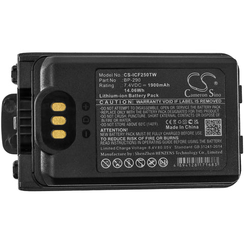 Replacement for BP-290, IC-F52D, IC-F62D, IC-M85