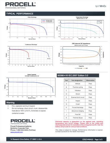 Individual Battery Specifications: