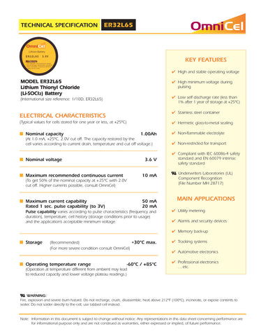 Replacement for Tadiran TL-4934, TL-4934/P, TL-5934, TL-5934/P - Xeno Energy XL-210F - Eagle Picher HP-5134