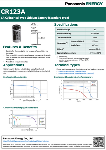 Replacement for Panasonic CR123, CR123A, EL123, EL123A, DL123, DL123A