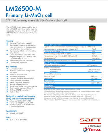 Saft LM26500-M Battery
