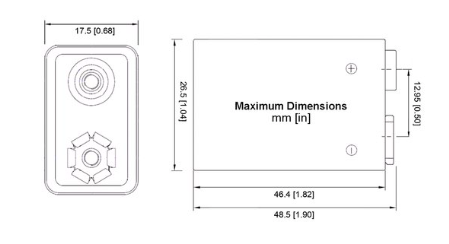 Dimensions: L 26.5mm (1.04") x W 17.5mm (0.68") x H 46.4mm (1.90")