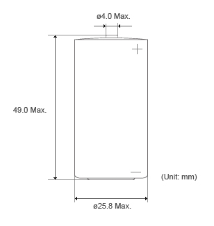Dimensions: Diameter 25.8mm x Height 49.0mm