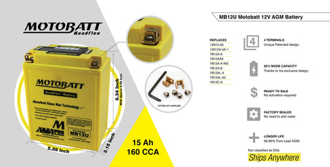 Motobatt MB12U Battery - 12V 15Ah 160CCA Sealed AGM