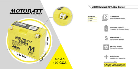 Motobatt MB7U Battery - 12V 6.5Ah 100CCA Sealed AGM