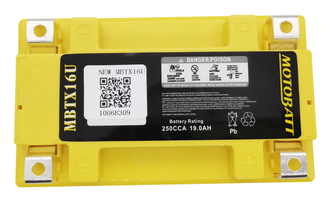 Motobatt MBTX16U Battery - 12V 19Ah 270CCA Sealed AGM