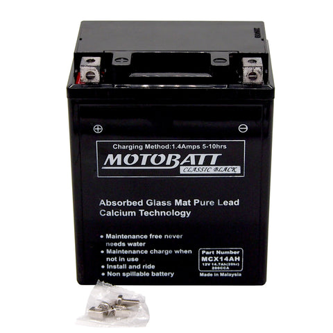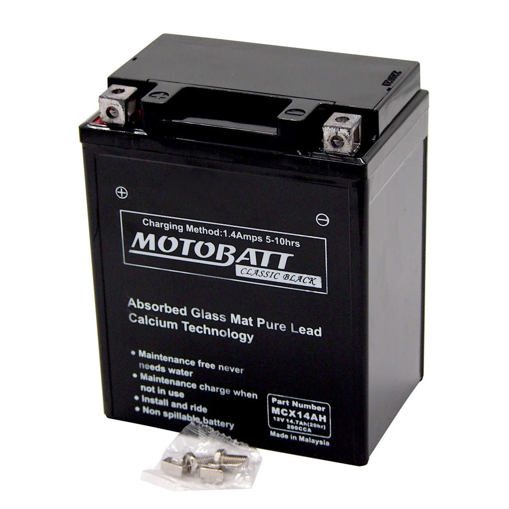 Motobatt MCX14AH Battery - Sealed AGM Classic Black