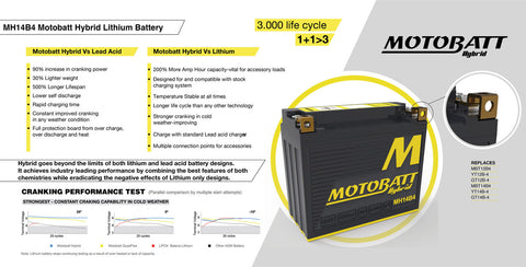 Motobatt MH14B4 Battery - 12V 8Ah 330CCA Hybrid Lithium