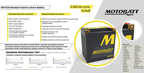 Motobatt MHTX30 Battery - 12V 24Ah 650CCA Hybrid Lithium