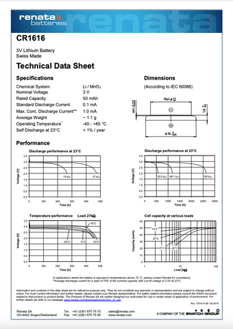 Replacement for Renata CR1616