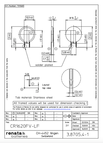 Replacement for Renata CR1620FV-LF