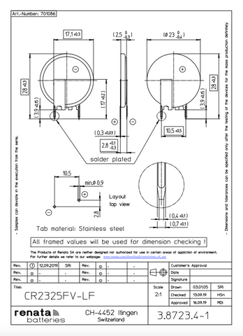 Replacement for Renata CR2325FV-LF